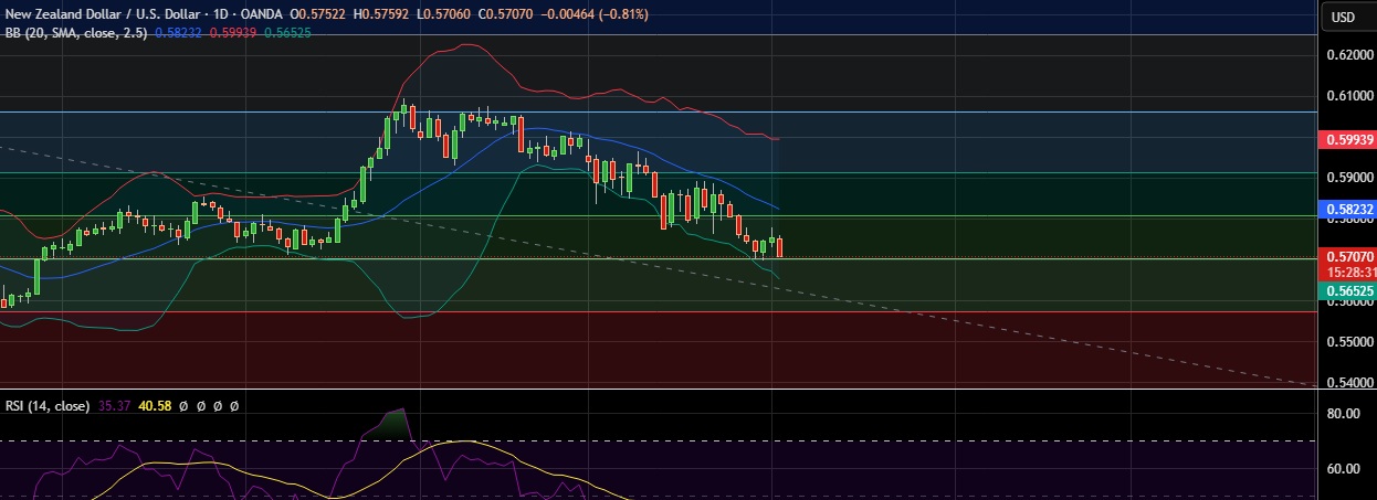 •Support is seen at 0.5702(38.2%fib) and break below could take the pair towards 0.5651(Lower BB).