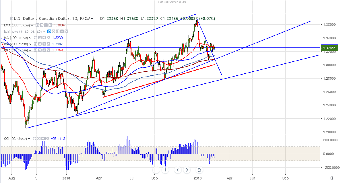 USDCAD has lost more than 80 pips after hitting high of 1.3340 level. Canadian dolalr is gaining strength against all majors on account of rising crude oil prices.The pair is consolidating after forming a minor bottom around 1.32250 low made on Feb 18th 2019. Markets eye US FOMC meeting minutes and BOC Gov Poloz speech for further direction. The pair has formed temporary top around 1.36648 on Jan 2nd on account of better than expected Canadian economic data and jump in crude oil price and declined till 1.30685. It is currently trading around 1.33110.