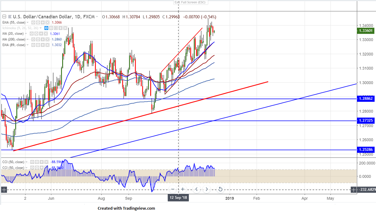 USD/CAD declines more than 70 pips after a good recovery till 1.34250 from low of 1.32530. The slight decline in Lonnie was due to US-China trade deal hopes. The signs of easing industrial policy by China for “Made in China 2025” and strong buying of more than 2 million tons of Soybean by China is also supporting Canadian dollar. Loonie hits 6-month high at 1.3449 and has become trend less after a good jump of more than 250 pips from low of 1.31599.The pair hits intraday low of 1.33226 and currently trading around 1.33590.