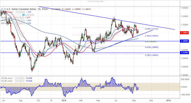 USDCAD is trading weak after a minor recovery of nearly 90 pips from the low of 1.29765. The slight strength in Canadian dollar is due to surge in US oil and optimistic NAFTA trade talks. Canadian manufacturing sales came at 0.9% slightly lower from forecast of 1.0%.The pair lost more than 60 pips after the data. The pair hits low of 1.29950 and is currently trading around 1.30019.