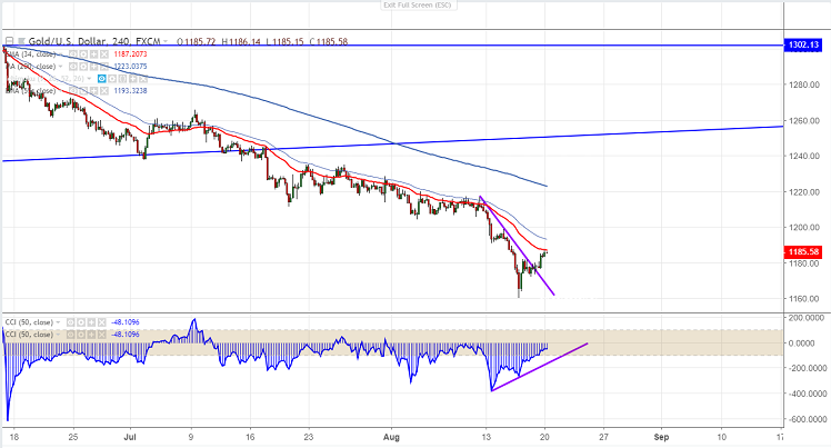 The yellow metal has shown a good jump of almost $25 from the low of $1160. Gold hits high of $1186.54 and is currently trading around $1185.
