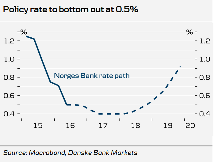 "Norges Bank will now keep rates unchanged at 0.5% throughout 2017. As we see it, only a significant strengthening of the NOK could trigger a further rate cut." said Danske Bank in a report.