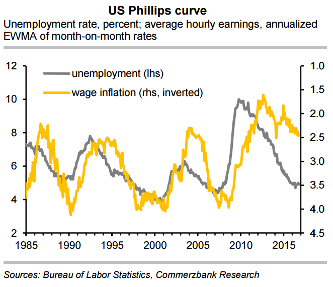 "Our US economists now assume 2.3% inflation (in terms of the Fed-relevant core PCE measure) in 2017 and further acceleration in 2018. I think it is fair to assume that the Fed would prefer higher interest rates," said Commerzbank in a report.