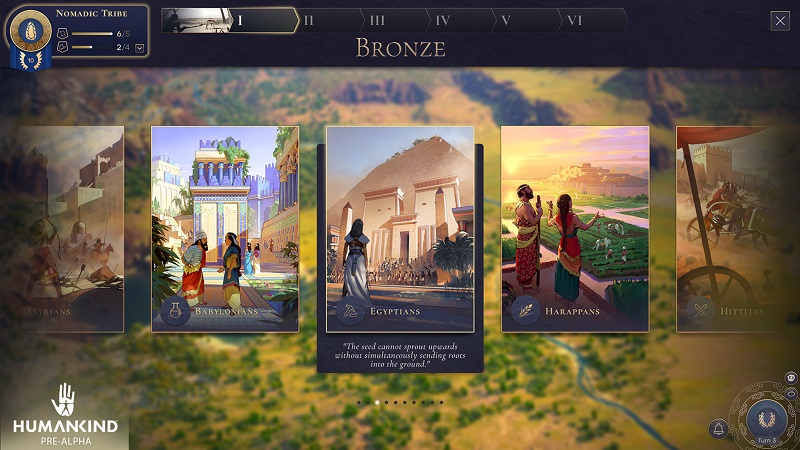 When the era ends, players will choose from a list of 10 cultures to play for the next era. Each culture will have its own set of traits such as Rome’s knack for empire-building or the Nubian’s skill in commerce.