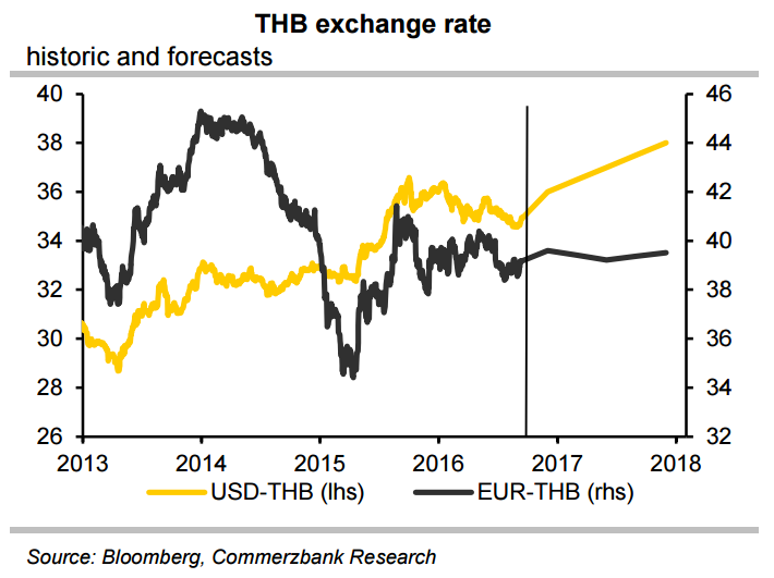 A broadly stronger USD on the back of rising hopes of a Fed rate hike, BoT’s preference for a weaker THB and persistent political uncertainty have weighed on the THB. THB was the third worst performing currency in Asia in 2015 and on account of the above-mentioned reasons is likely to remain on a weakening trend. Commerzbank forecasts USD-THB at 36.00 by end-2016.