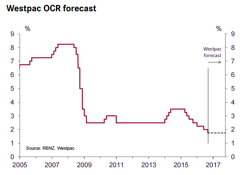 The Reserve Bank of New Zealand at Thursday's Monetary Policy meeting cut the Official Cash Rate to a new record low of 1.75 percent as widely expected and signalled it has probably done enough to return inflation to target as economic growth quickens. Downside risks to the domestic economic outlook have been dissipating and the RBNZ remains conscious of the risks of over-stimulating the economy and housing market, as well as the associated risks for the exchange rate.