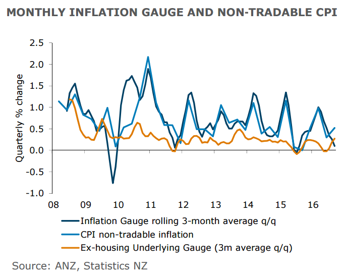 Earlier today, Statistics NZ revised up the Q3 CPI result from 0.2 percent to 0.3 percent, which lifted annual CPI inflation from 0.2 percent to 0.4 percent, and non-tradables inflation from 2.1 percent to 2.4 percent. Given the RBNZ was forecasting 0.2 percent annual CPI and 2.2 percent annual non-tradable inflation in Q3, this +0.2 percent surprise adds to the argument that the RBNZ is unlikely to cut the OCR further after this week in the absence of an adverse global event.