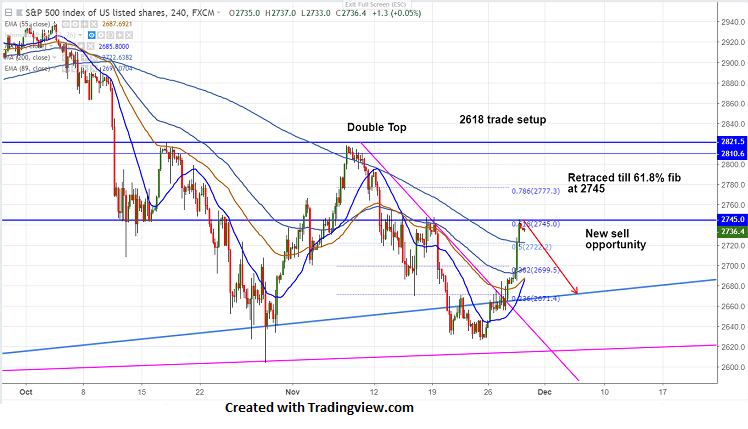 S&P500 has shown a massive jump yesterday of more than 2% almost 60 points form low of 2681 level. The index hits high of 2745 and shown a minor decline.It is currently trading around 2735.40.