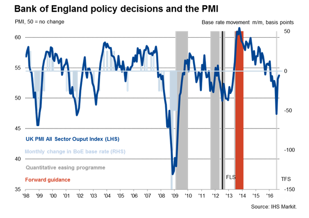 The improvement suggests the economy has regained growth momentum, recovering from the initial shock of the EU referendum in late-June. The risk of recession in the second half of 2016 has, therefore, all but evaporated, and the solid PMI readings for September will cast doubt on the need for any further stimulus from the Bank of England in coming months.
