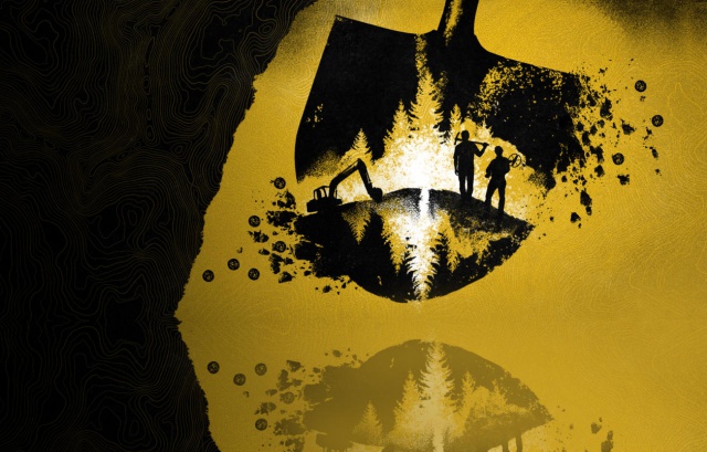 “The Curse of Oak Island” season 6’s logo now features Marty and Rick Lagina standing on top of the island and they each carry a tool for digging. On one side of the picture, a backhoe is at work.