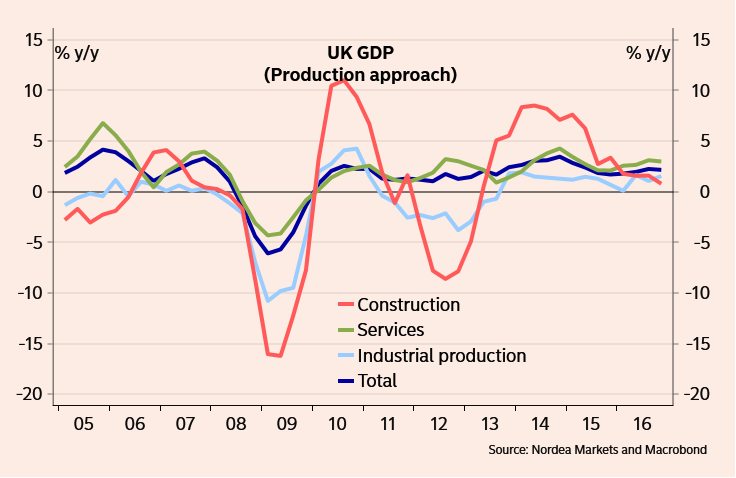 "The solid activity data support our view that the Bank of England will keep monetary policy on hold. Given our forecast of a slowdown in growth during 2017 we continue to expect the bank to look through an expected rise in inflation to well above the 2% target as the effect of the GDP feeds more through to consumer prices." said Nordea Bank in a report.