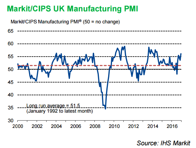 "The manufacturing sector likely will struggle to maintain its current growth momentum throughout 2017," said Samuel Tombs, of Pantheon Macroeconomics.