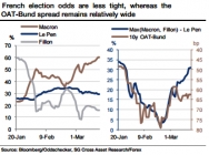 The political risk is tracked by the bookmakers odds, where the probability of a Le Pen win is stable around 30% (please refer above graph). The medium/long-term impact on euro crosses highly depends on the...