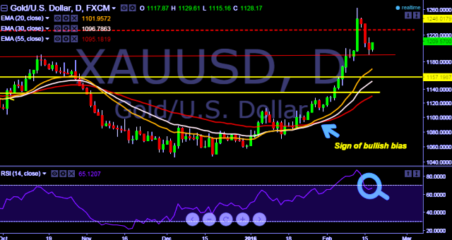 We maintain our bullish bias. Take long position on XAU/USD around $1205, stop loss $1190 and target $1218/1227 levels.