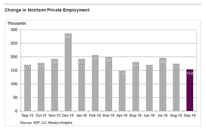 - Non-farm private sector employment grew at 154,000 in August. In August payroll grew by 175,000.