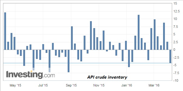- American Petroleum Institute’s (API) weekly report showed inventory dropped by 4.3 million barrels.