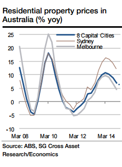 Perhaps most importantly, at 6.3% yoy real estate inflation would remain very strong, regardless of the slowdown. The data are also likely to indicate increasing divergence in house price trends between the eight capital cities: Sydney's house prices gains are likely to have remained 'crazy' as RBA governor Glenn Stevens called them, and probably accelerated, whereas the ones with the least momentum (Darwin, Hobart, Perth) are likely to have weakened further. Perhaps most importantly, after the RBA cumulative 50bp rate cut this year, the risk is that property price inflation will pick up in coming quarters.