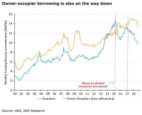 While most of the focus around credit tightening has been on investors, the accelerating decline in owner-occupier borrowing suggests that weaker sentiment in the housing market is having an impact on the demand for credit.