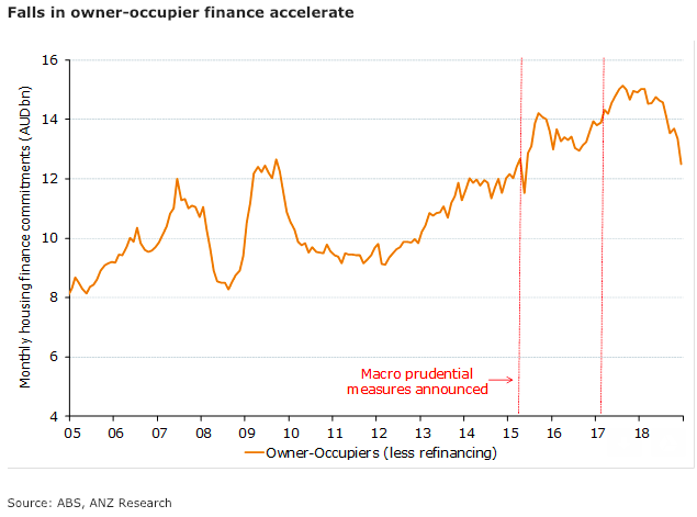 The value of housing finance commitments fell at a faster rate in December. Finance approvals are now 20 percent lower over the year. Further declines are likely as tighter lending standards continue to filter through, ANZ Research reported.