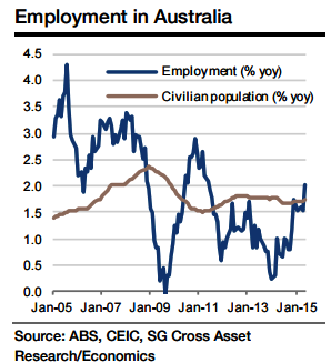 Australia's recent data suggests that the job losses in mining and those sectors associated with mining investment are more than being offset by gains in residential construction, catering services and other parts of the services sector there is little reason to expect a change in this dynamic in the near future.