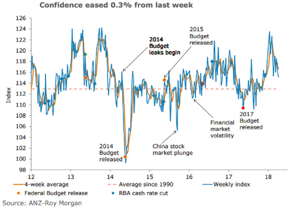 "We believe global news has dictated sentiment around economic sentiment, while more fundamental factors such as continued employment growth have helped maintain confidence in financial conditions," said David Plank, Head of Australian Economics, ANZ Research.