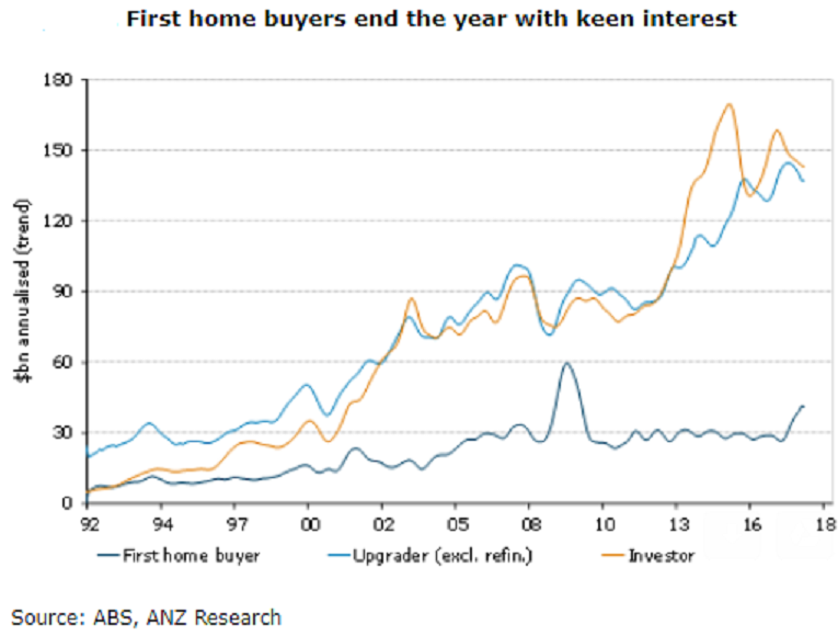 Finance for first home buyers slipped a touch in December (-1.4 percent m/m) but has stabilized at much higher levels than seen in recent years. Indeed, finance for first home buyers is still up 35 percent y/y and accounted for 11.7 percent of total finance.