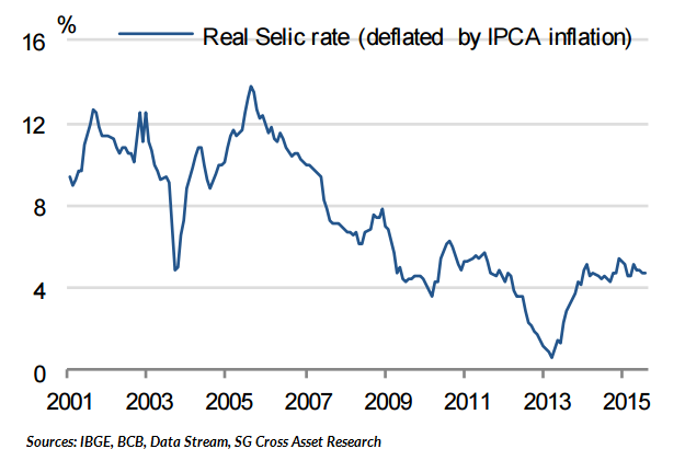 Societe Generale expects a rate cut of only 50bp in 2016, vs a 125bp rate cut previously. The consensus view of a rate cut of about 175bp in 2016 is probably too optimistic.