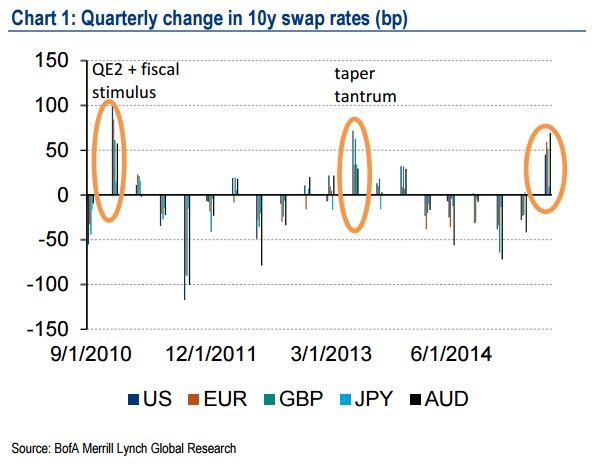 Rightly or wrongly, fixed income investors have been heading for the hills lately. As a result, global rates, especially the long-end of the yield curves, have backed up sharply. Indeed, the rates sell-off has been so violent that the increase in 10y rates of major markets in Q2 was the largest since taper tantrum.