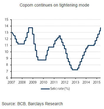 "We also expect a strong emphasis on the inflation expectations behavior, as a key variable for monetary policy. As of now, we expect the Copom to hike by another 25bp in July and stop the cycle with the Selic rate at 14.00%", says Barclays.