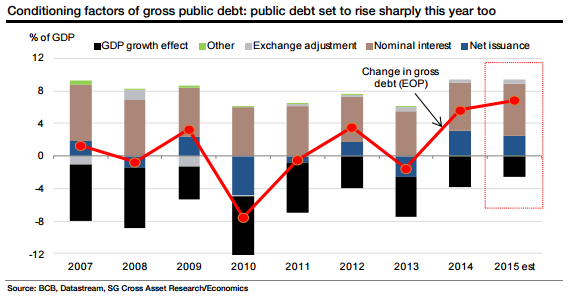 A quick look at the conditioning factors of gross debt suggests that each of the key components - issuance, interest payments, exchange adjustment and nominal growth - have worsened year-to-date compared with the 2014 numbers for the same period.