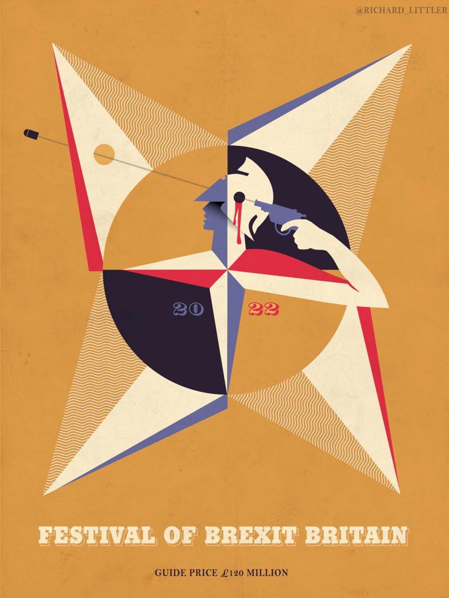 If you thought satire was dead in the age of Brexit and Trump, then a quick look at social media should pretty quickly disabuse you of that illusion. Search “Festival of Brexit Britain” if you want a picture of satire’s bright future. Theresa May’s recent announcement that she wants the UK to hold a national festival in 2022 to celebrate leaving the EU prompted an avalanche of humorous memes – including the illustration by the artist Richard Littler at the top of this article.