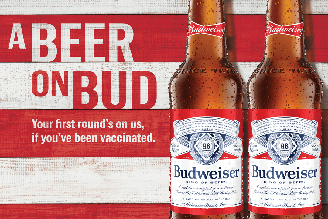 From now until May 16, beer drinkers who are 21 or older can go to ABeerOnBud.com and show their proof of vaccination, which is either a pic of your "I Got Vaccinated" sticker, a pic of the Band-Aid stuck to your upper arm, or a selfie taken while you were at a vaccination location.