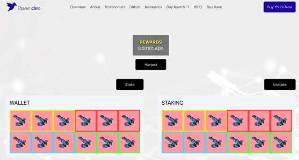 Users of the $RAVE NFT shall at least hold 30,000 $RAVE in the same wallet and must stake at least $50 ADA in RAVEP, Ravendex’s ISPO pool. More than $9 million in ADA have been staked in the pool.