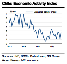 "Given the structural slowdown in China and its continued downward impact on commodity demand and prices, we do not see external demand conditions improving for Chilean exports any time soon. As a result, we continue to expect timid, below-trend growth for Chile over the medium term", notes Societe Generale in a research report.