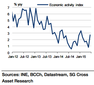 "Moreover, the economy might actually have contracted on a sequential basis in Q2 (-0.1% qoq) vs growth of 1.0% qoq in Q1. Based on the numbers in H1 the economy istherefore more likely to grow close to 2.2-2.3% in 2015, as against our earlier forecast of 2.6%", says Societe Generale.