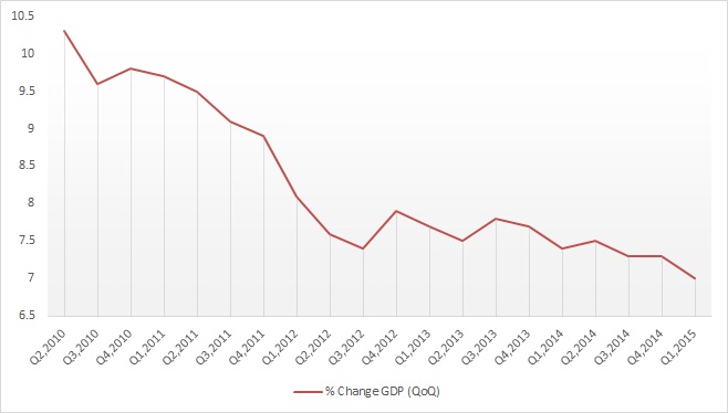 Chinese officials have stipulated 7% growth target for the economy this year along with inflation of 3%. However other broad macro-economic trend suggests that GDP might fall further.