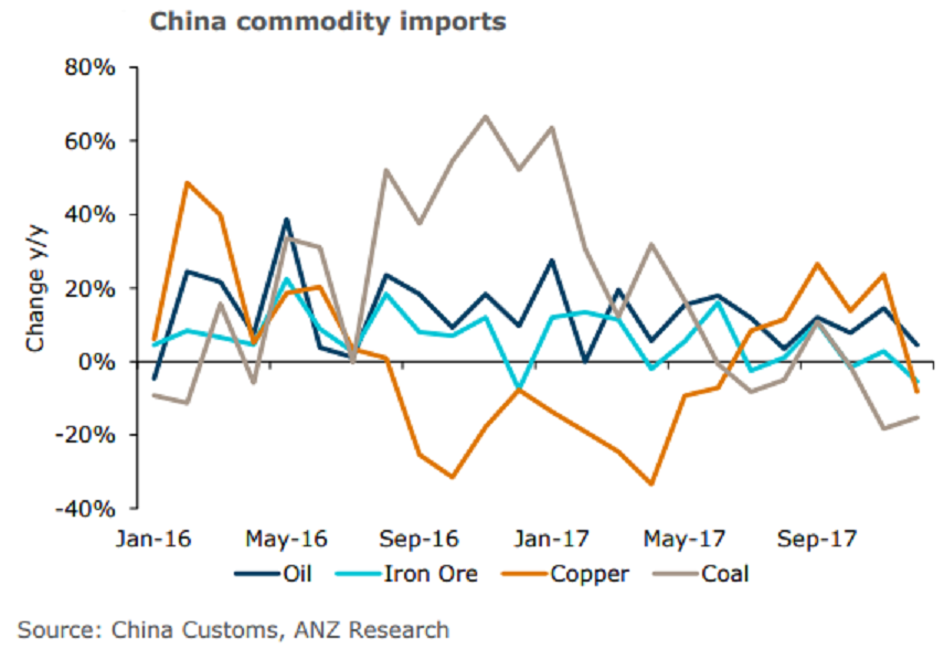 China’s levels of imports of major commodities remain elevated in December, as domestic demand remained robust amid ongoing supply constraints. Year-on-year growth rates eased slightly, raising some doubt as to continued strong growth in 2018.