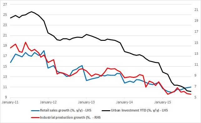 - Urban investment growth dropped to 10.2% in October from 10.3% in September, but that's marginal compared to 0.9% drop in last two months.