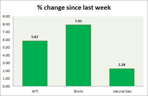 - Brent-WTI spread gained to $3.7/barrel from $3.6/barrel.