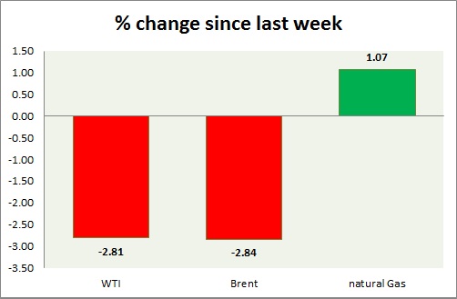 - Brent-WTI spread flat at $3/barrel from $3.7/barrel.