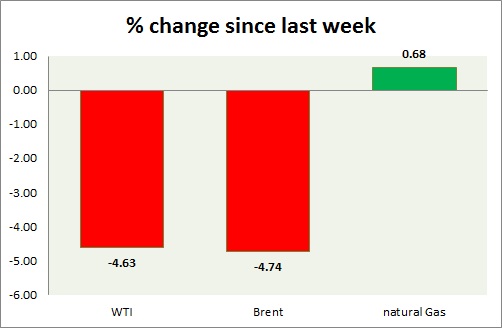 - Brent-WTI spread dropped to $2.8/barrel from $3/barrel.