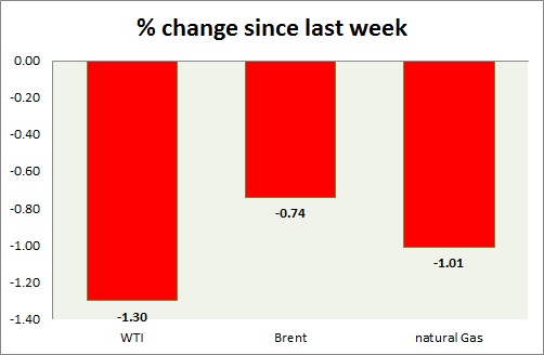 Energy pack is mixed, while oil is down, gas is trading green today. Weekly performance at a glance in chart & table.