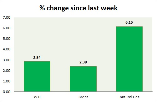 - Brent-WTI spread dropped by $0.5/barrel to $2.8/barrel.