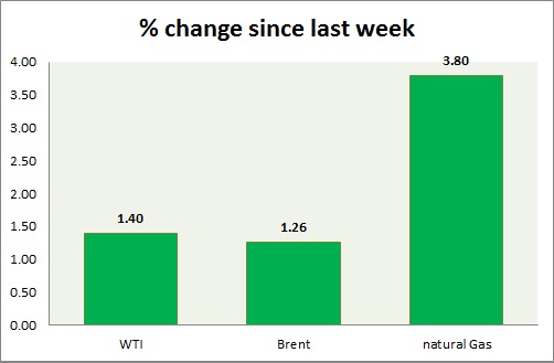 - Brent-WTI spread rose by $0.1/barrel to $2.9/barrel.