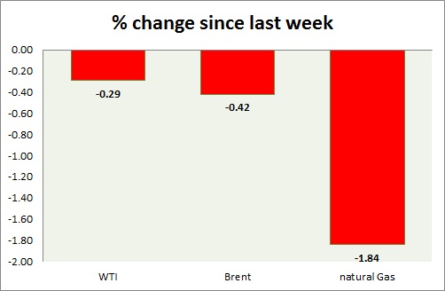 Energy pack is mixed, while oil is up, gas is in red today. Weekly performance at a glance in chart & table.