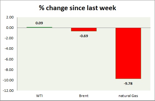 - Brent-WTI spread dropped by $0.1/barrel to $2.1/barrel.
