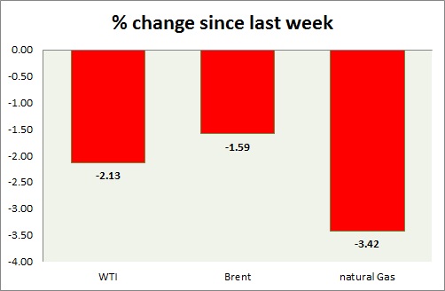 Energy pack is red today. Weekly performance at a glance in chart & table.