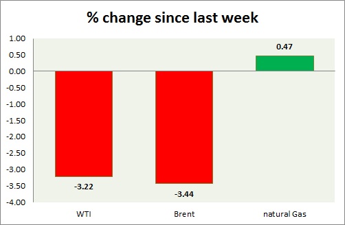- Brent is trading at $45.7/barrel. Immediate support lies at $44, $40.5 area and resistance at $51, $54 region.