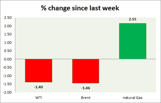 - Brent is trading at $2.1 per barrel premium to WTI.