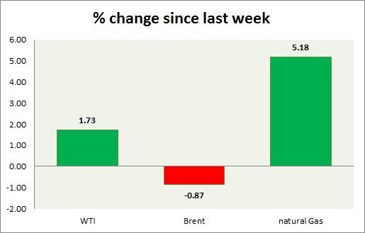 - Brent is trading at $2 per barrel premium to WTI. Likely to widen further.